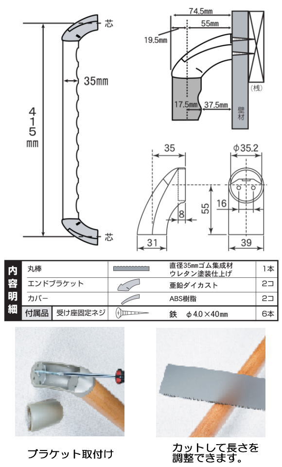 ゴム集成材を使用したエコマーク認定のてすり棒です。