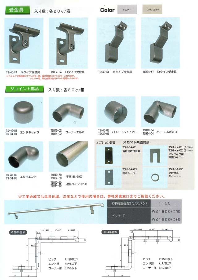 歩行補助用手すり タカラ産業 ハイウェイブS アルミ製40丸 TSH40-KYKY受金物