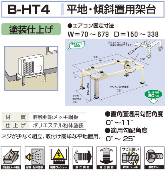 バクマ工業 エアコン室外ユニット用据付架台 平地・段差置用架台 B-HT4 塗装仕上げ