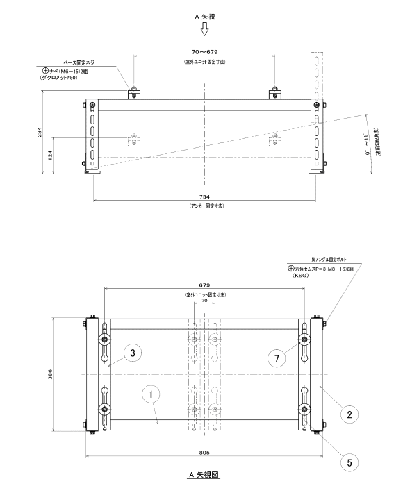 バクマ工業 エアコン室外ユニット用据付架台 平地・傾斜置用架台 B-HZAM3 高耐蝕溶融メッキ鋼板ZAM製