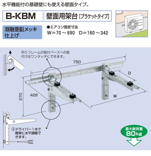 バクマ工業 エアコン室外ユニット用据付架台 壁面用架台[ブラケットタイプ] B-KBM 溶融亜鉛メッキ仕上げ