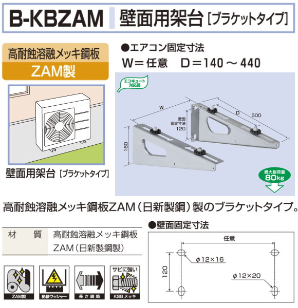 | 品名・品番 | 壁面用架台[ブラケットタイプ] B-KBZAM | ||