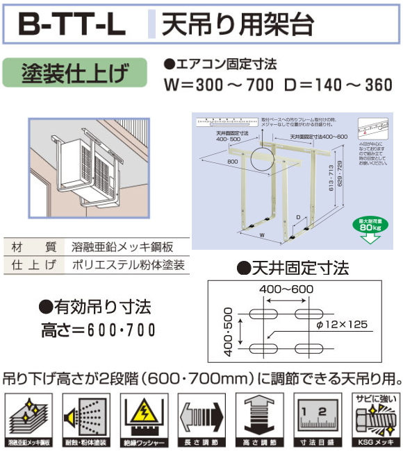 バクマ工業 エアコン室外ユニット用据付架台 天吊り用架台 B-TT-L 塗装仕上げ