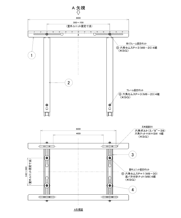 バクマ工業 エアコン室外ユニット用据付架台 天吊り用架台 B-TT2 塗装仕上げ