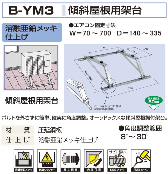 バクマ工業 エアコン室外ユニット用据付架台 傾斜屋根用架台 B-YM3 溶融亜鉛メッキ仕上げ