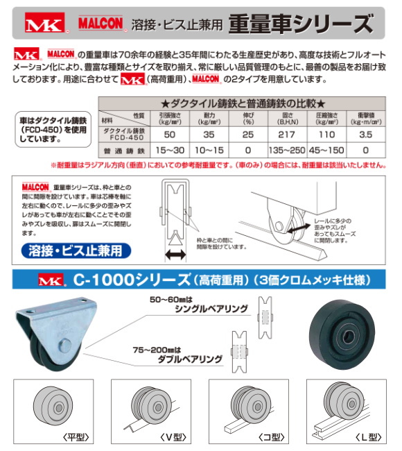 丸喜金属本社 MK 溶接・ビス止兼用 重量車 C-1000-500 MK枠付重量車(V型)50Ф 1個販売