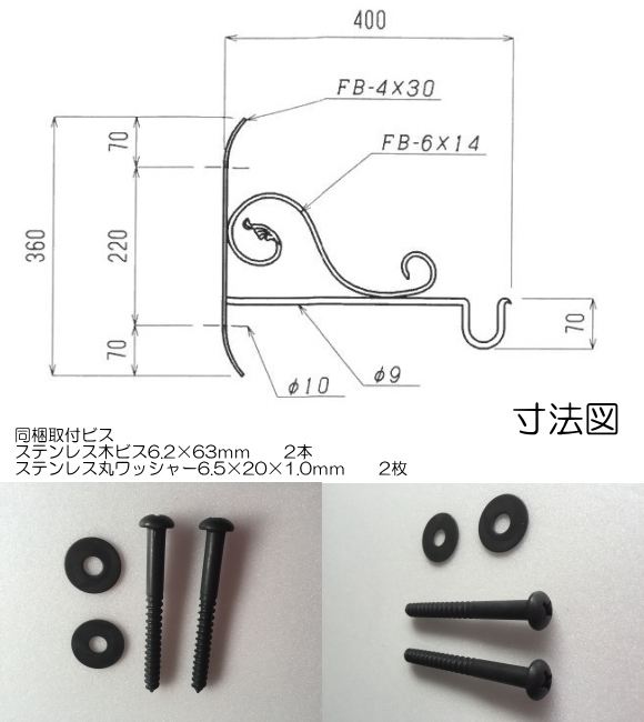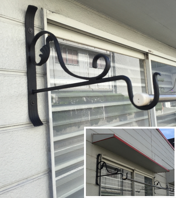 【代引不可・地域限定送料無料】ロートアイアン物干し アート技研工業 DBR4 1セット2本組販売 ブラック 400x360 ベランダの出入り口など窓側の壁に取り付けて使うことができるおしゃれなロート鍛造物干し掛けです