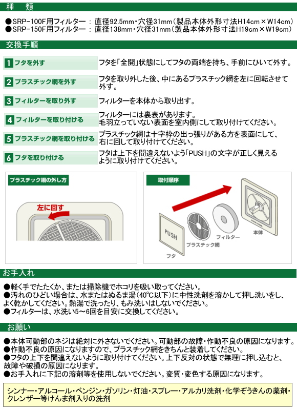 新協和 プッシュ式レジスター(PM2.5対応フィルター付) SRP-150+FR-PE150。従来の花粉フィルターよりもさらに細かいPM2.5に対応した静電フィルターを採用