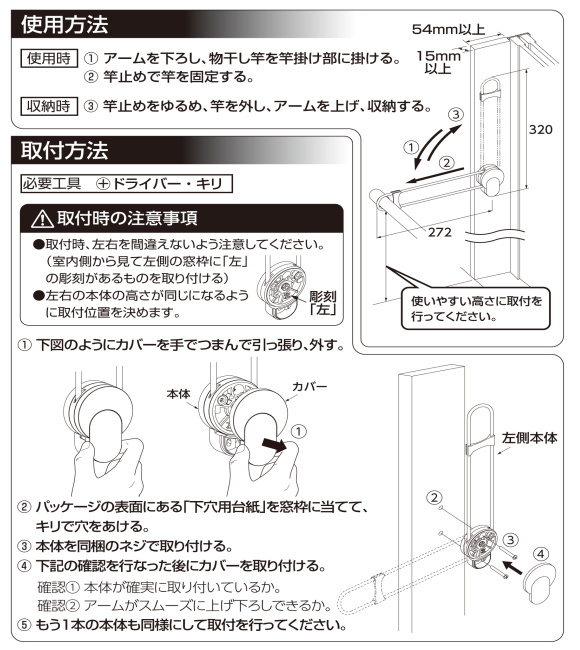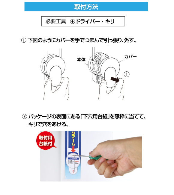 | 取り付けに必要な道具 | プラスドライバー、キリ |