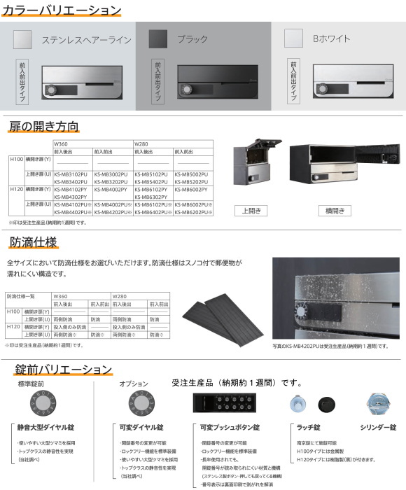 カラー/錠前/納期について