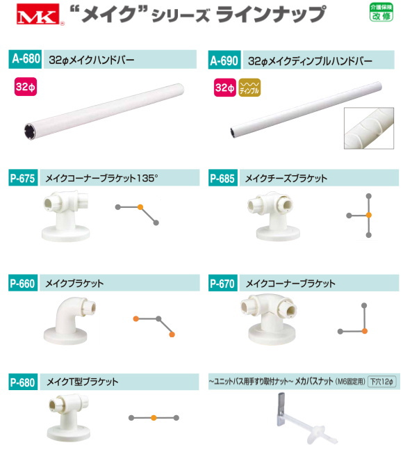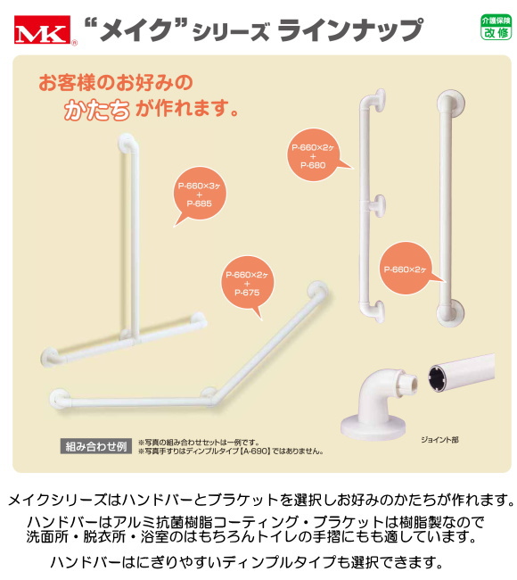 バリアフリー メイク手スリシリーズ 浴室対応樹脂製手すり部品
