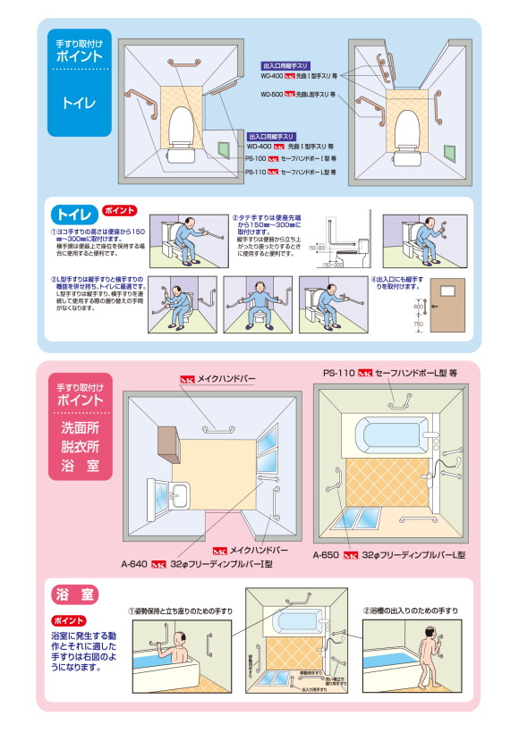 バリアフリー・介護・改修工事に!浴室・トイレ・洗面所に最適です。