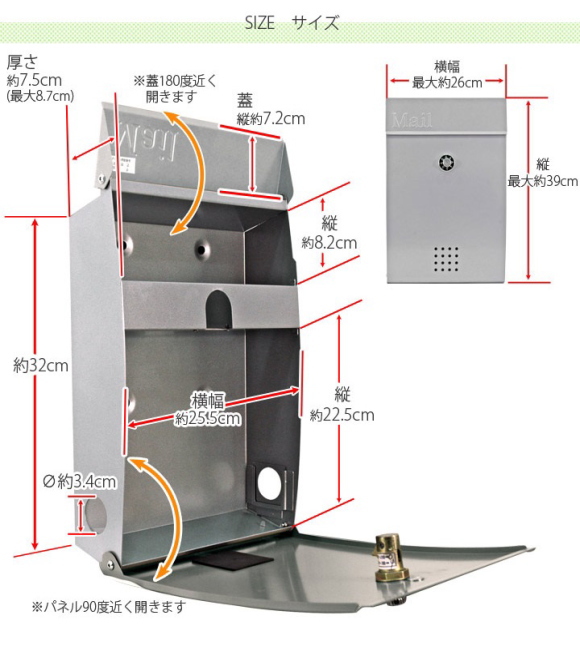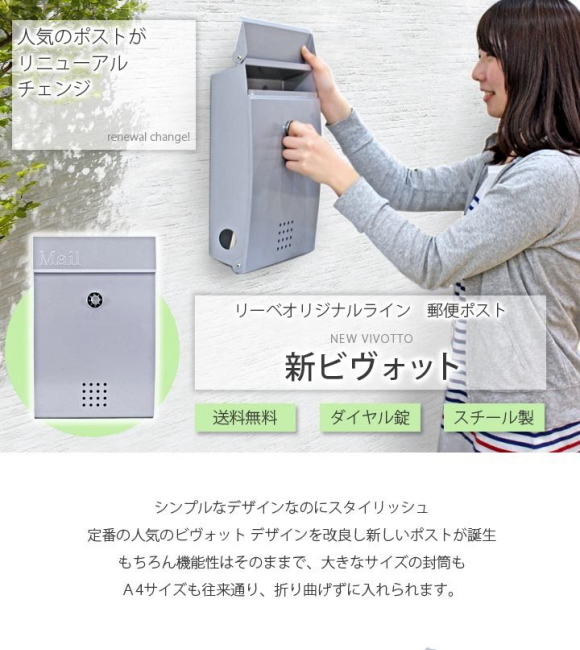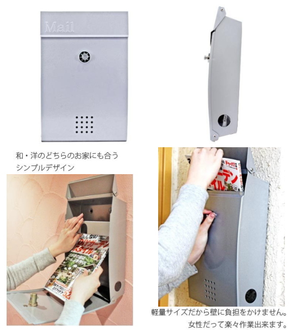 | 壁付けポスト 新ビヴォット レッド PLB-233 ダイヤル錠 A4サイズも入るおしゃれなポストがリニューアルして新登場! コンパクトでモダンな郵便ポスト・安心のダイヤル錠と便利な手前開き 品番・カラー/PLB-233 レッド 仕様/ダイヤル錠・前開き・壁付けタイプ 材質/本体 スチール製 サイド部分 プラスティック サイズ/約W262×H390×厚み110mm 取付け方法 壁付け付属品:カギ2個、取付用ビス、アンカープラグ 特徴 ●ダイヤル錠 マグネット付きで施錠無しでも蓋が閉まります。 ●スマートでもA4サイズはすっぽり入ります。 ●軽量サイズだから壁に負担をかけません。 |