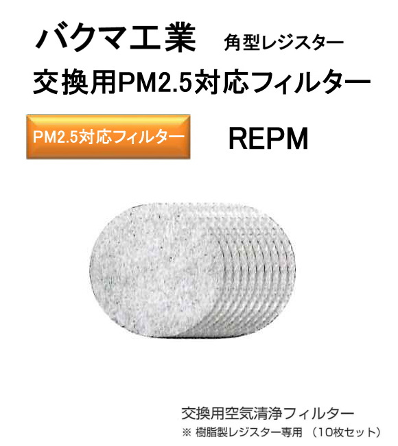 バクマ工業 RBEAR(ベアー)交換用PM2.5対応フィルター REPM-100。Ф100 樹脂製角型レジスター専用(10枚セット)