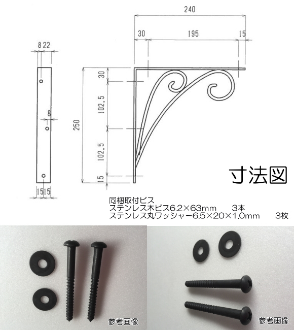 【代引不可・地域限定送料無料】ロートアイアン 棚受 アート技研工業 RPH10 1セット2本組販売 ブラック 240x250 シンプルなデザイン。しっかりと棚を作ることができます。