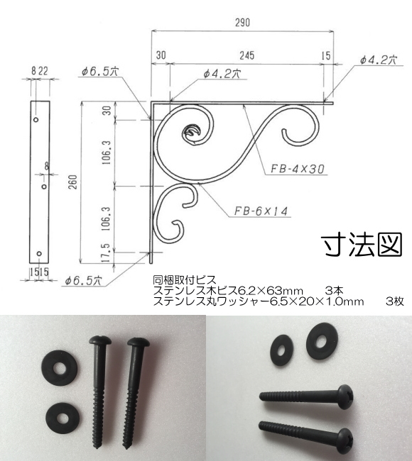 【代引不可・地域限定送料無料】ロートアイアン 棚受 アート技研工業 RPH13 1セット2本組販売 ブラック 290x260 アンティーク調のインテリアにピッタリなアイテム。素敵なディスプレイゾーンや収納スペースを作れます。