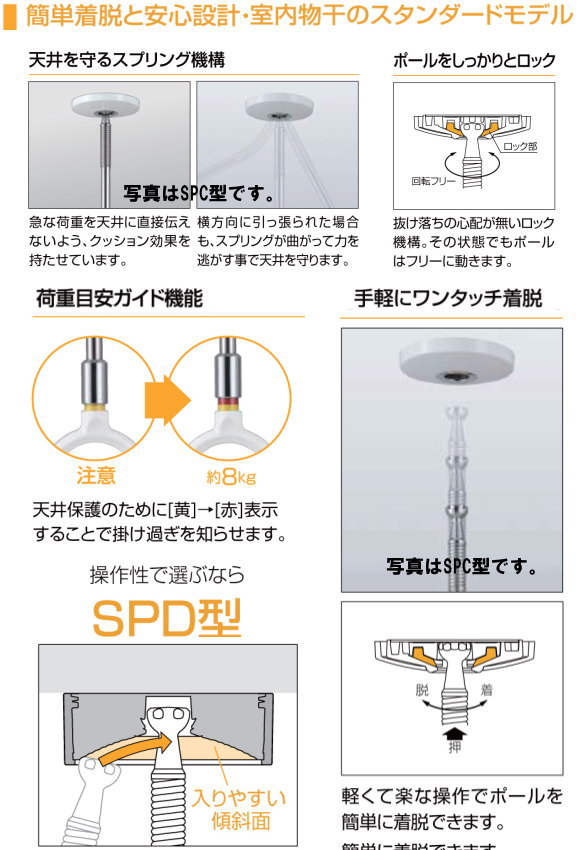 ●天井を守るスプリング機能、ワンタッチ着脱機能