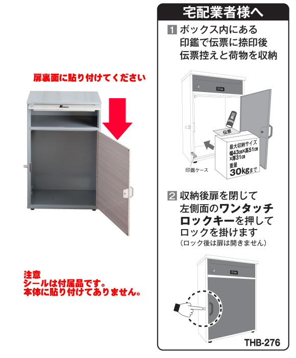 | 1段目 | 可変式ロック・メール便対応(厚さ3.5cmが3個まで可能) |