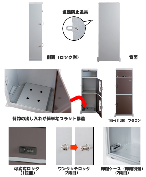 | 1段目 | 可変式ロック・メール便対応(厚さ3.5cmが3個まで可能) |