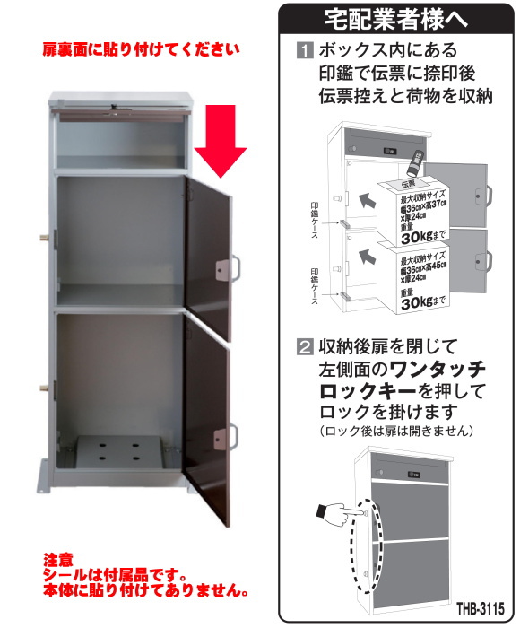 | ●外出してても受け取り可能なメール便対応ポスト付宅配ボックス ●3段式 ●前入れ前出し ●100サイズまで対応。留守でも複数の荷物が受け取れる宅配ボックス ●1段目はメール便対応。2段目は2リットルペットボトル6本入り対応・3段目は約100サイズまで対応 ●ネットショッピングを頻繁にご利用の方、本・雑貨など比較的小さい物が多く届く方、ストッカー(物入れ)として使用したい方などに最適 ●出入り口がフラットなので荷物の出し入れが簡単 ●ワンタッチロック採用で施錠、解錠が簡単 メーカーより直接発送させて頂きますので商品代引きはお受けできません。 本州、四国、九州の陸送便での配達可能地域のみ送料無料です。 申し訳ありませんが、北海道、沖縄県、その他都府県の離島へは発送できません。 |